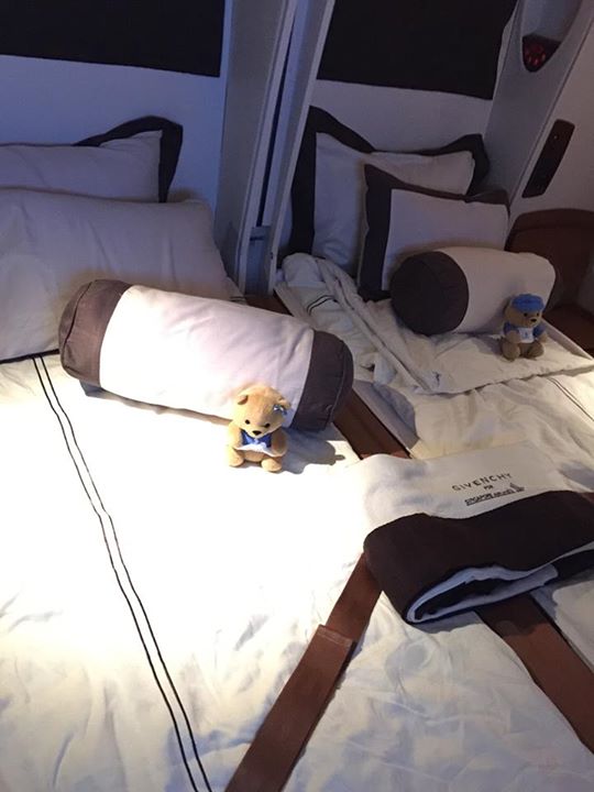 After clearing the meals, the stewardess helped to deploy the beds.